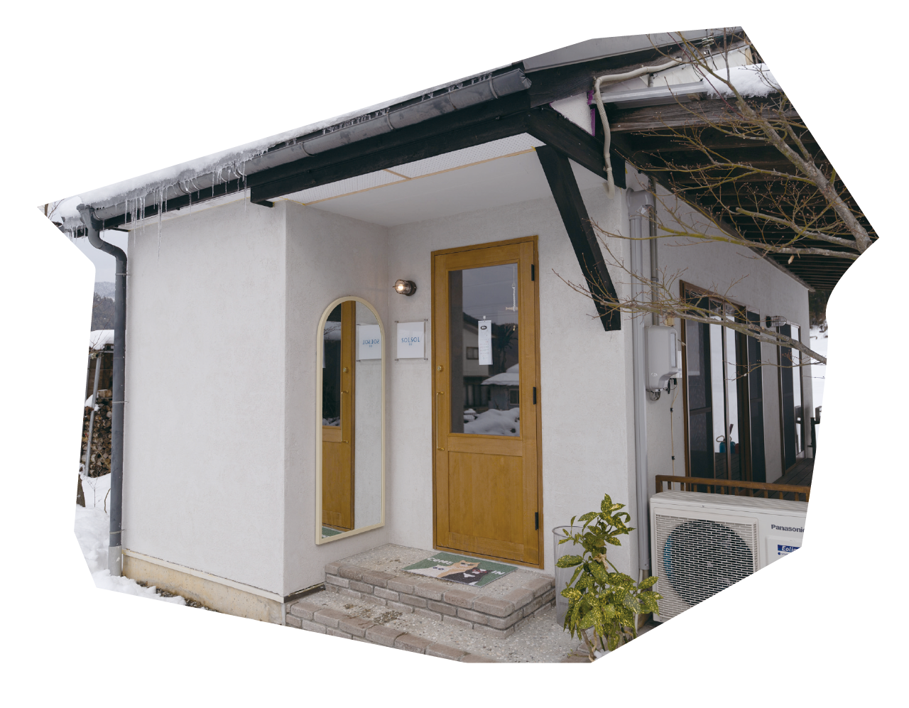 エントランスには全身が映るかわいい鏡が。