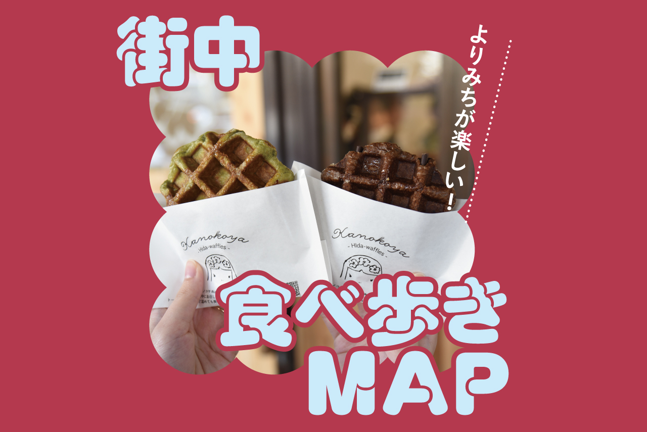 高山の町を訪れたなら足を運びたいのが、古き良き佇まいが残る「古い町並み」を中心に広がる街中のエリア。城下町の歴史を感じる通りをそぞろ歩けば、見つかる見つかる美味しいもの!見逃せないあの味は事前にしっかりチェック。いくつになっても楽しい食べ歩きを、思う存分楽しみたい。