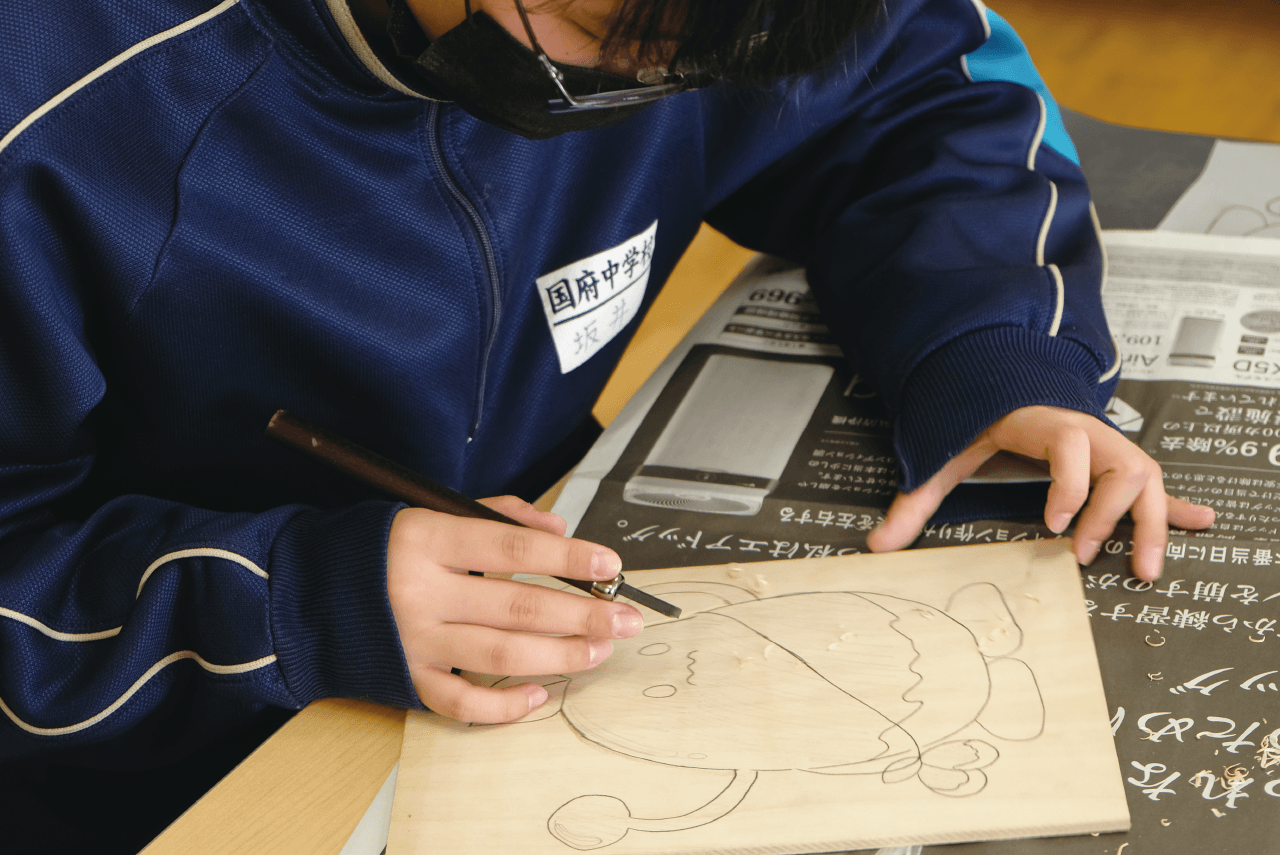 飛騨では古くから親しまれてきた「ナツメ」の実。甘く煮たそれが食卓に上がるのは飛騨の冬の風物詩だったが、昨今ではそれも珍しいシーンとなった。そんな「ナツメ」の食文化を守り、「次世代に残したい」と活動を始めたのが〈みんなの庭〉。彼らが開発した「乾燥ナツメ」用の包装紙を、版画で制作するワークショップが開かれた。使われるのは、河合で手漉きされた「山中和紙」。小学生から80代までの幅広い年代の参加者が、〈ひだ木版同好会〉の方々の指導を受けながら、思い思いの図案に取り組んだ。美しい「山中和紙」を使った唯一無二の包装紙が、「ナツメ」を次世代へとあたたかくつないでいく。