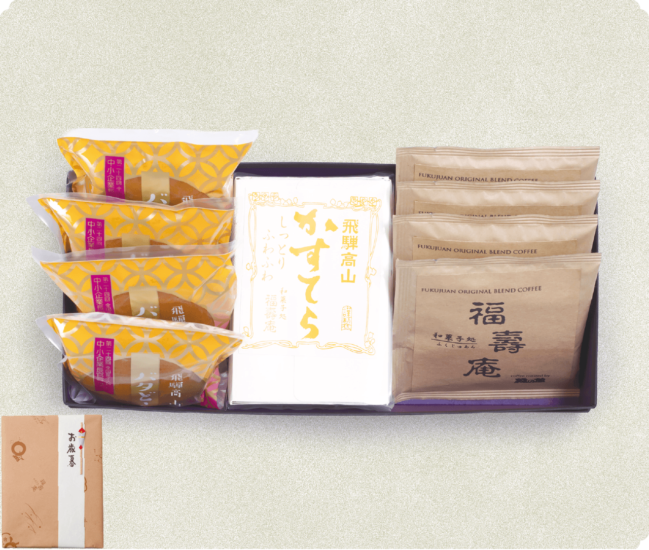 バター香るどらやきと、しっとり「かすてら」。和の甘みを引き立てるのは、苦みひかえめで香り高い、〈緑の館〉コラボのオリジナルコーヒー。お茶でも紅茶でもない、新しい和の時間を贈るギフトセット。「バタどら」は日持ち14日、「かすてら」は日持ち5日。