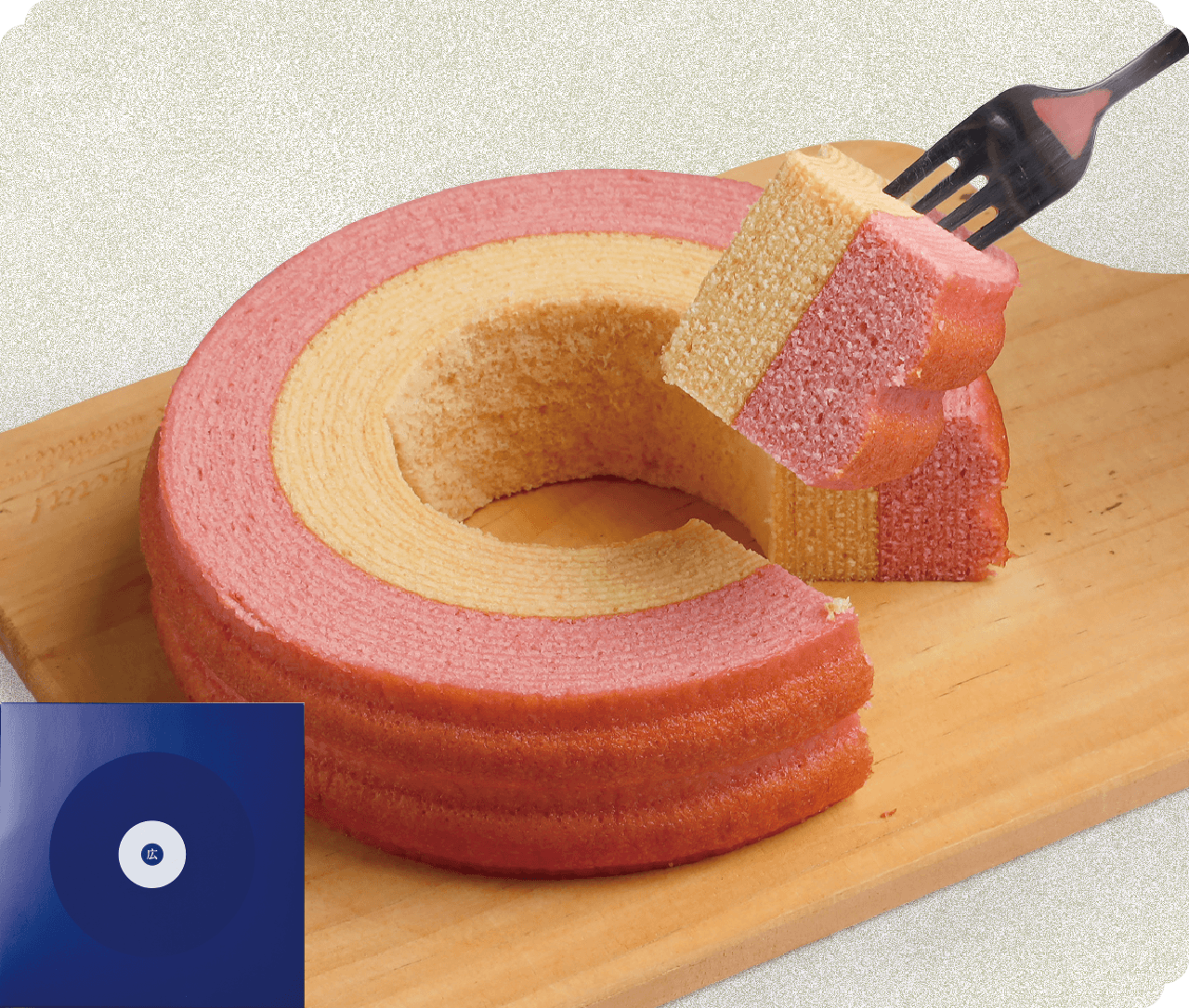 ていねいに生地を重ね、じっくりと焼き上げた米粉バウムクーヘンはほどよい甘さ。まろやかな香りもたまらない。子どもから年配まで安心して食べられるやさしい味を楽しんで。