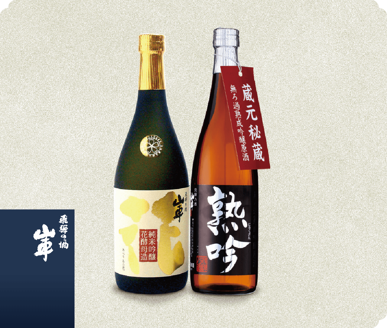 冬季限定、完熟した香りと旨みが乗った「熟吟」と、今年コンテストで金賞を受賞した「山車 純米吟醸 花酵母造り」のセット。各720㎖ 4,205円。