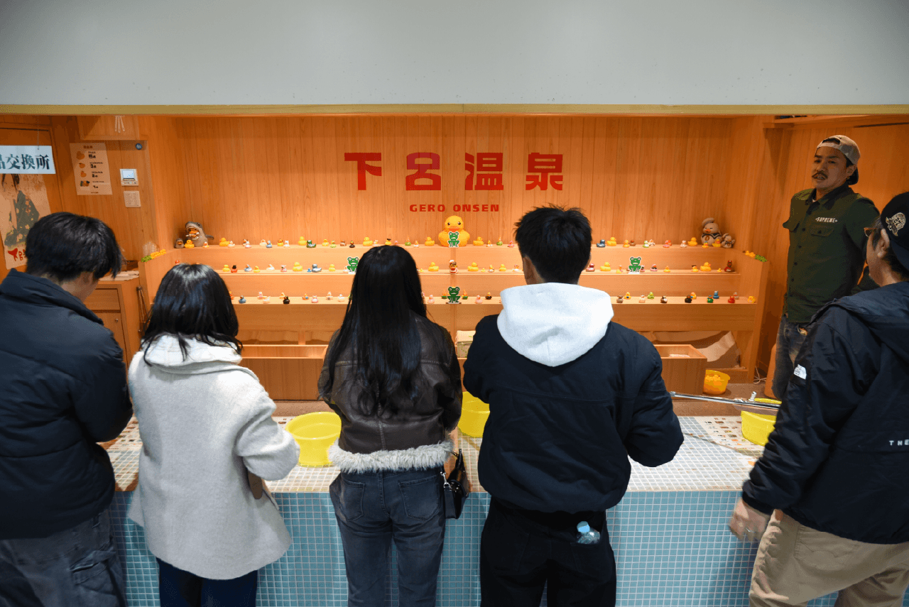 せっかく下呂散策するなら、まずは楽しみたいのが温泉街ならではのアクティビティ。昭和の頃、温泉といえば必ずあった「射的場」を現代風にリバイバルさせたのがこのスポットだ。足を踏み入れる客のお目当ては、この温泉地ならではのオリジナルな景品。店主の遊び心が伺えるバリエ豊かなアヒルたちに狙いを定め打ち抜けば、豪華な飛騨牛をゲット出来るかも!? 昭和の遊びが懐かしい人もそうでない人も、童心に帰って白熱すること間違いなし!※入店は18歳以上から。
