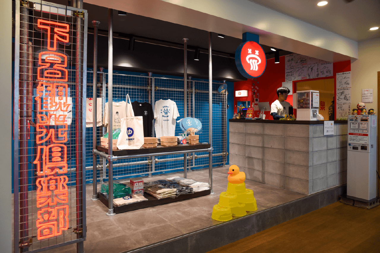 自店オリジナルの温泉グッズを扱う物販ブースも見逃せない! 下呂温泉ならではのモチーフを生かしたTシャツもチェック!