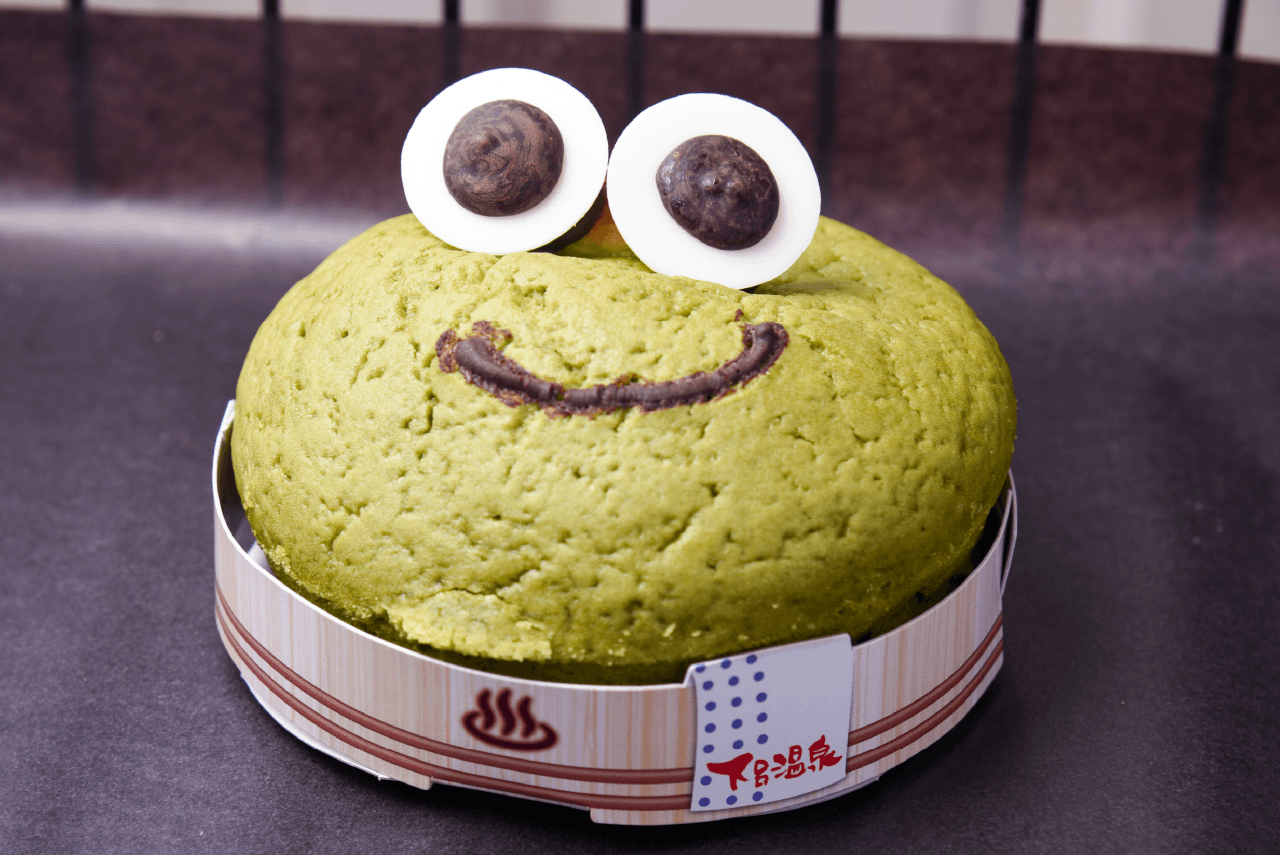 名物の「下呂ゲロかえるパン(宇治抹茶)」。カエルをかたどったメロンパンは、プレーンやイチゴなどのフレーバーも展開。