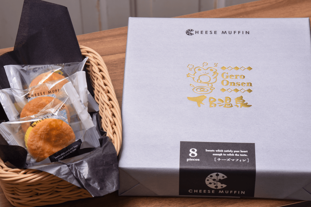 ファンシーグッズだけでなく、箱物のお土産も取り扱っている。下呂温泉チーズマフィンはボリューミーで食べ応えあり!