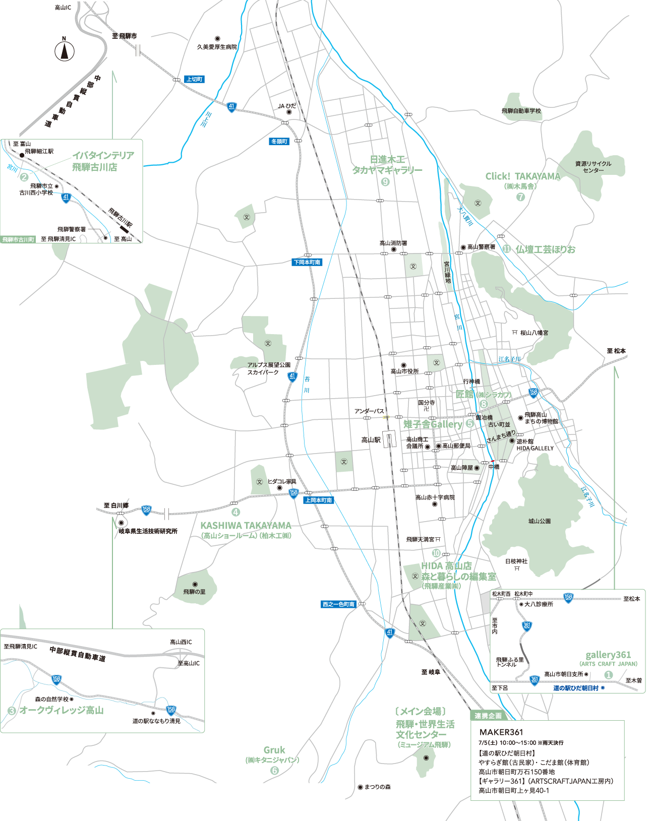 飛騨一円に点在する各社のショールームを巡るなら、このマップをチェック!