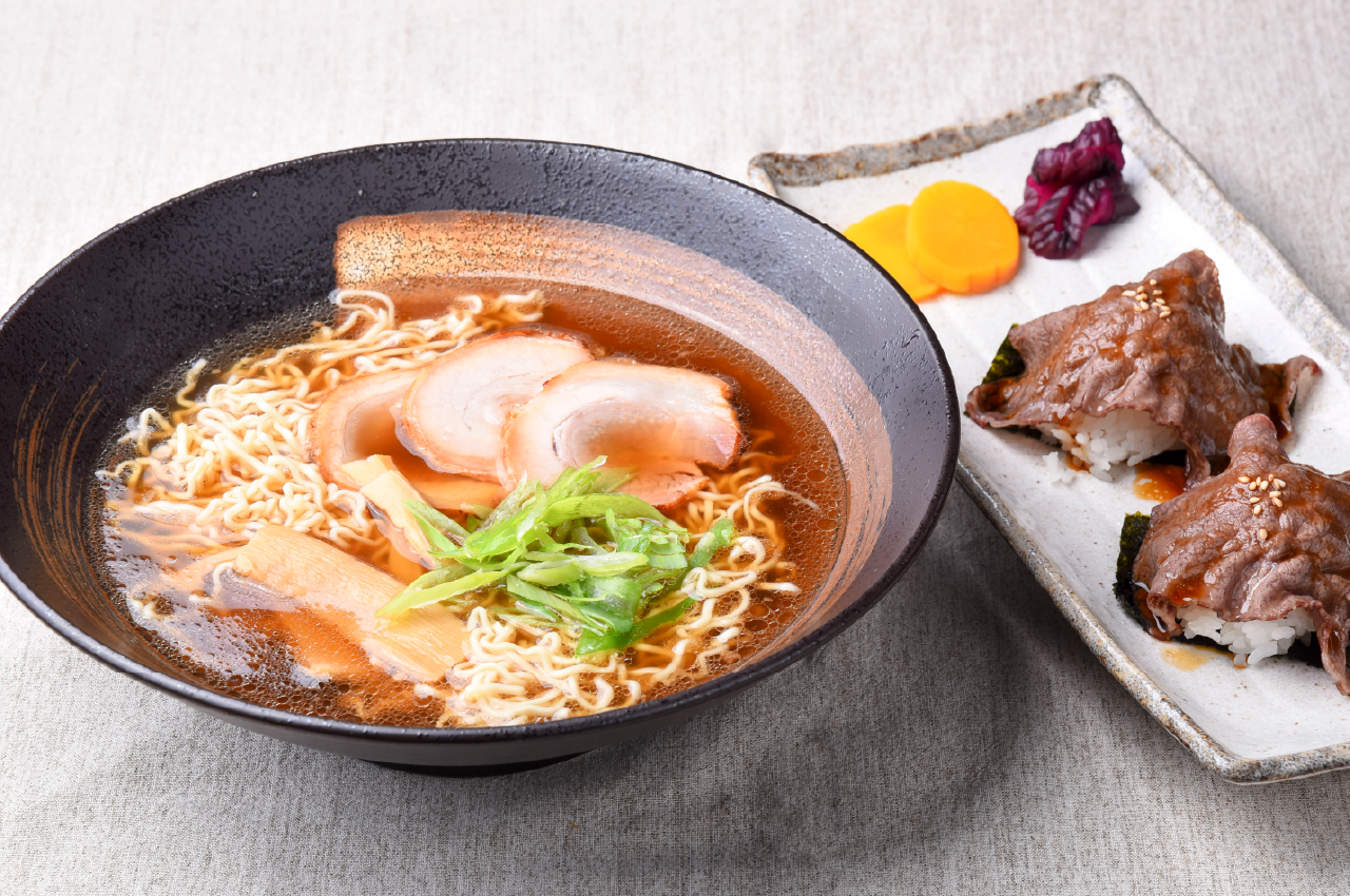 「中華そば」と「飛騨牛」のご当地グルメを同時に味わえるボリューミーなセット。