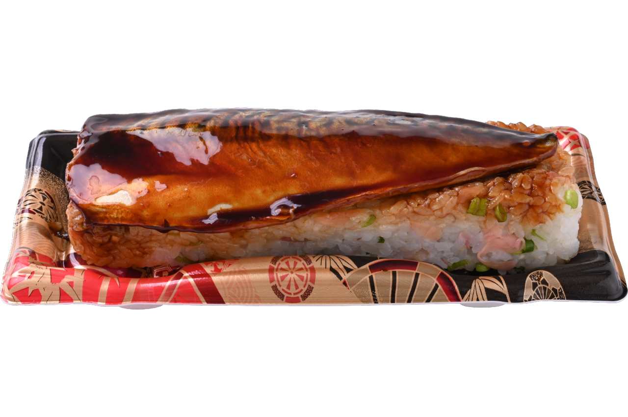 ふっくらと焼き上げた脂ののった厳選鯖と自慢のシャリの好相性!たっぷりの香味野菜が爽やか