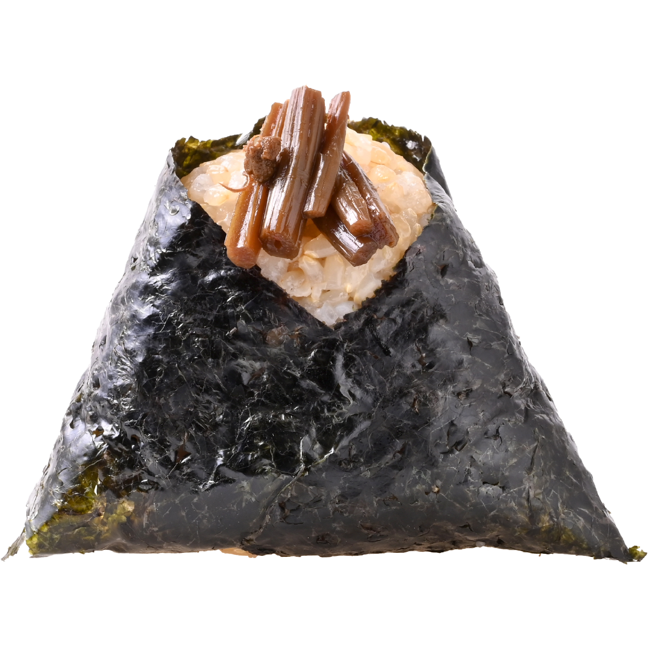 おむすびの具にも、一つひとつに愛情とこだわりが。店主自らが山に分け入り摘み取った山フキや、おむすびに合うようていねいに漬け込んだ梅。素朴ながらも手間を惜しまない工夫が、ひと口ごとにやさしい味わいを生み出している。
