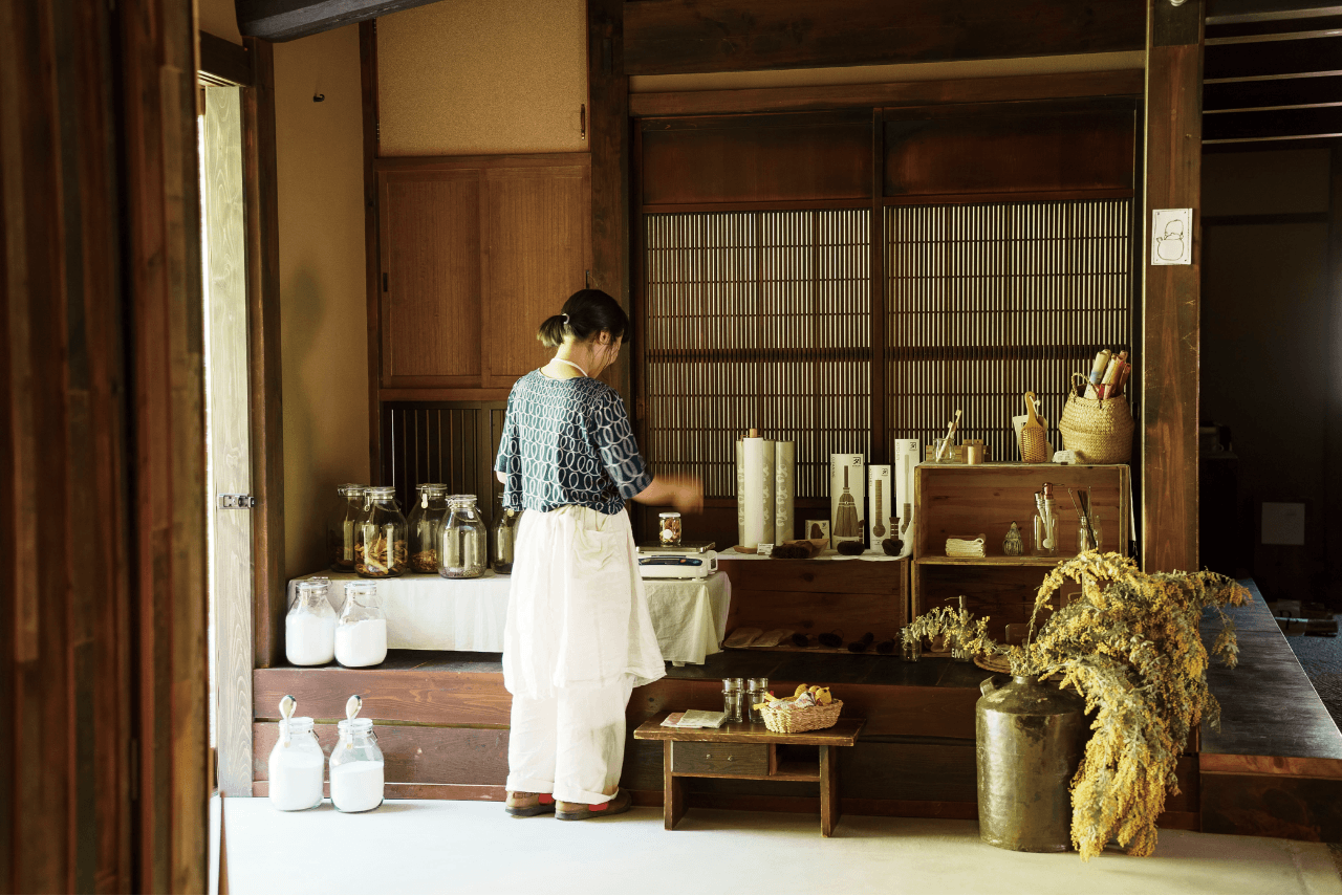 ゼロ・ウエイストの活動を続けてきた店主が自宅となった古民家にて開く、日用品と量り売りのお店。持参した容器で持ち帰れるオーガニックのドライフルーツやナッツ、国産重曹などの量り売りのほか、晒しやシュロのタワシなどサステナブルな日用品も。宇津江の自然に囲まれた里山の中で、暮らしを見直すモノとの出会いを。